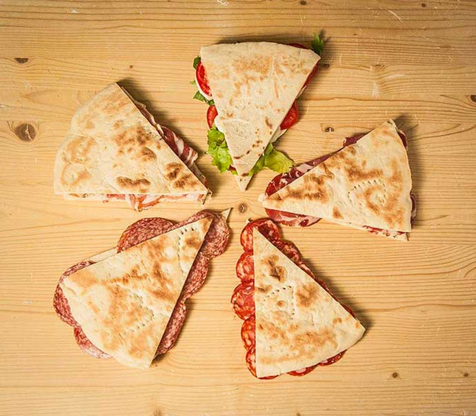 Ho scoperto che nelle Marche c’è una prelibatezza gastronomica che si chiama crescia. Non chiamatela piadina, perché è diversa sia nel gusto che negli ingredienti, e soprattutto scatenereste un putiferio, come accade spesso nell’Italia dei campanili. Non solo la crescia è diversa dalla piadina, ma ne esistono varie tipologie a seconda della località marchigiana: c’è la crescia di Urbino, quella di Pesaro, e così via. Ad Urbino ha una forma rotonda, un colore dorato ed è spessa qualche millimetro. E’ inoltre molto friabile e, come suggerisce il nome, è fatta a strati e sfoglie. Questa delizia può essere degustata farcita con vari ingredienti, come affettati, formaggio, verdure grigliate o insalate.