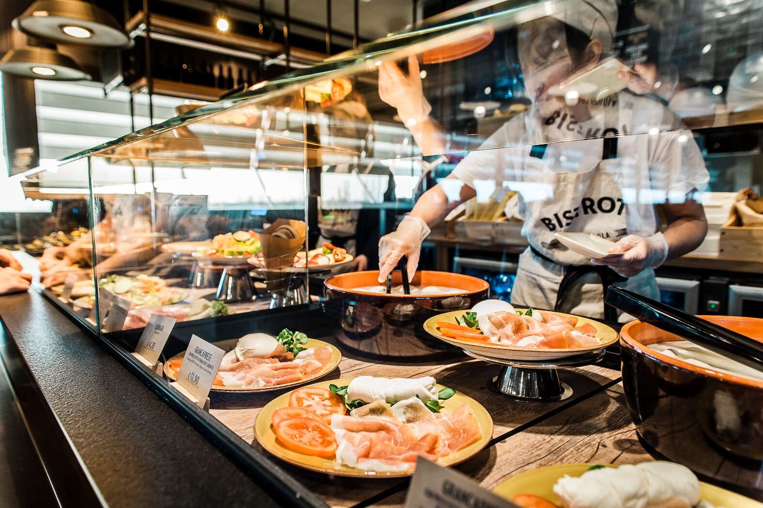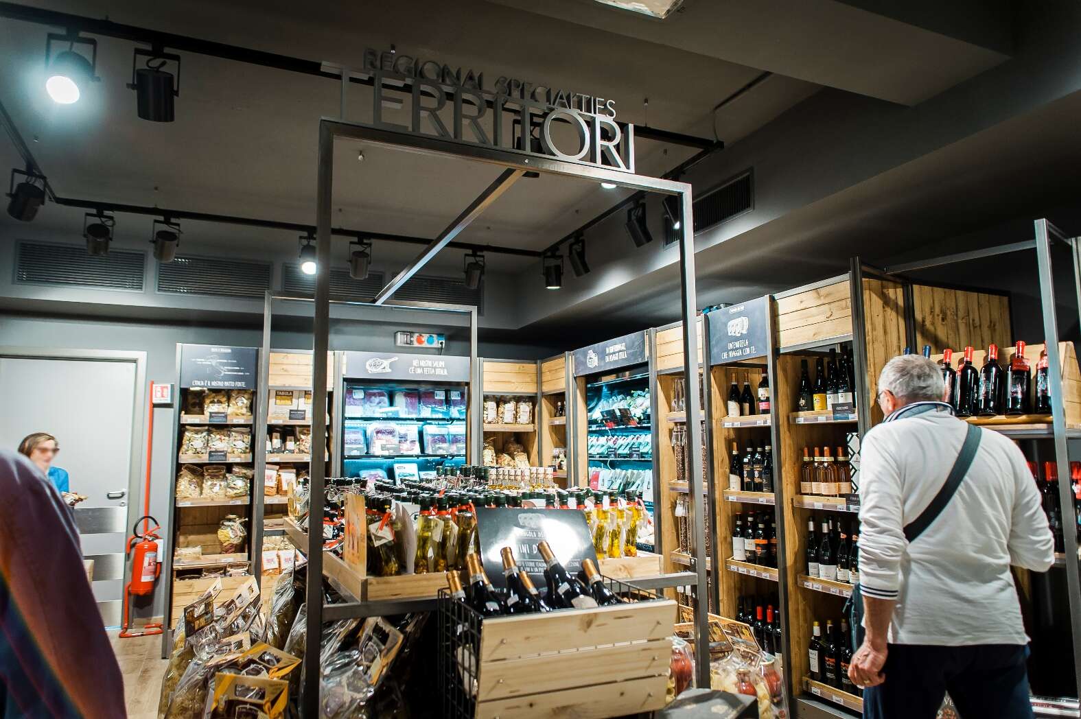 Un ulteriore balzo in avanti è stato fatto con il Bistrot dell’Autogrill di Fiorenzuola d’Arda (in Provincia di Piacenza), realizzato in collaborazione con l’Università degli Studi di Scienze Gastronomiche di Pollenzo che, come leggiamo sul sito ufficiale, «diventa protagonista dell’espressione della nuova cultura alimentare – in movimento ma non solo – e della rinnovata attenzione che Autogrill dedica alle mutate esigenze e stili alimentari dei consumatori per offrire ai propri viaggiatori una pausa di qualità». Un’offerta all’insegna della naturalità, stagionalità e località: un forno che panifica sotto lo sguardo del cliente, pasta fresca con farine di un mulino di Voghera, specialità dolciarie di note pasticcerie locali, carne proveniente da un allevamento del territorio. Per chi vuole mangiare qualcosa di più leggero, non mancano insalatone, frutta e centrifugati, tutto rigorosamente freschissimo in un’oasi chiamata non a caso “Il Frutteto”. Completa l’offerta un market con tanti articoli d’eccellenza, come l’aceto di un produttore che ha alle spalle 600 anni di storia aziendale. Anche la cura dell’arredamento rispecchia questa ricerca di bellezza.