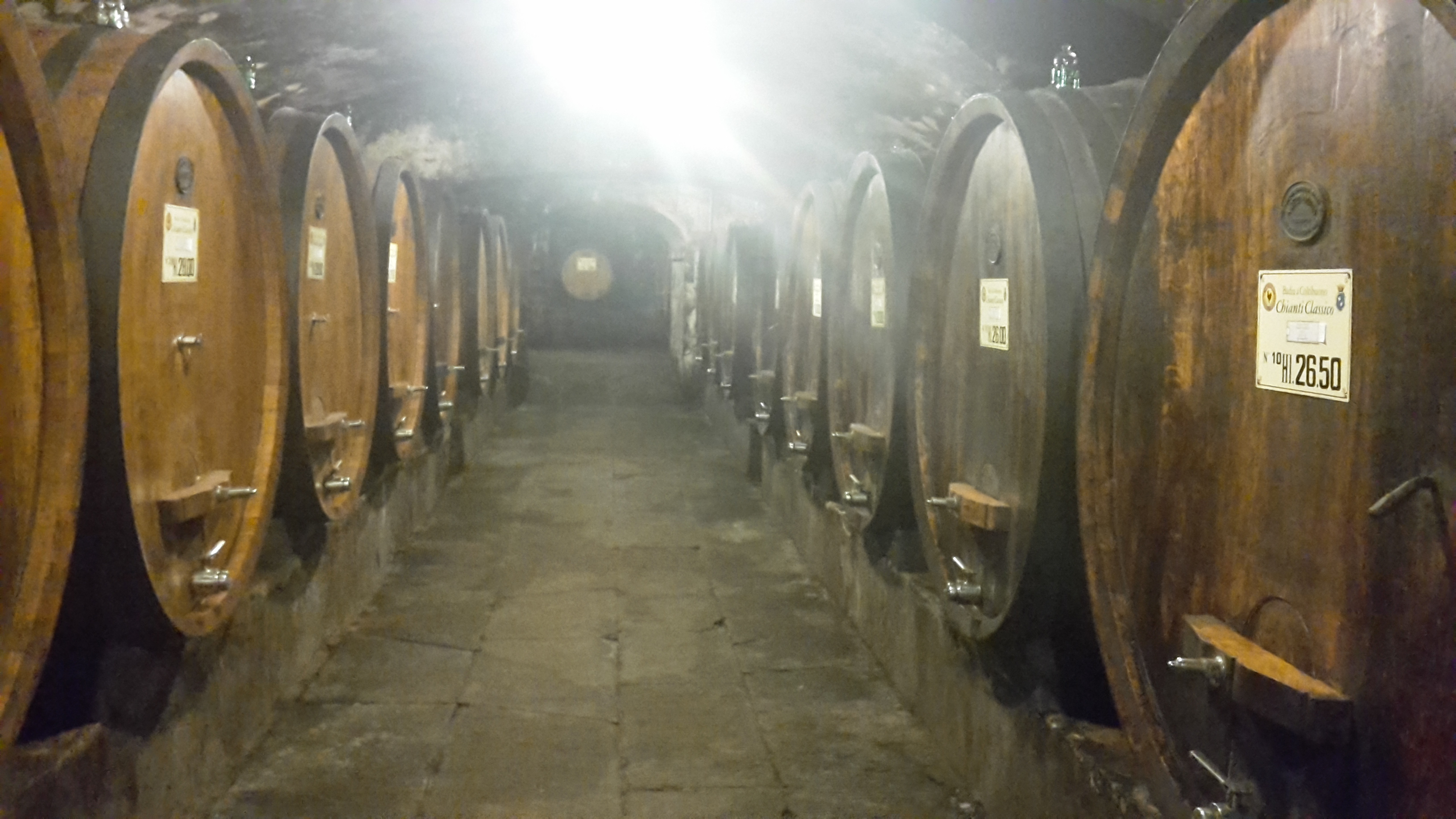 E poi, sempre sotto terra, c’è la “biblioteca del vino”: un luogo affascinante, dove giacciono migliaia di bottiglie coperte di polvere, su scaffali che portano l’anno di produzione. La più antica è del 1937. In questo luogo così suggestivo si tengono delle degustazioni “verticali”: lo stesso vino, ma di annate diverse. E’ stata di recente stappata una bottiglia di Chianti Classico Riserva del 1946: era ottimo!