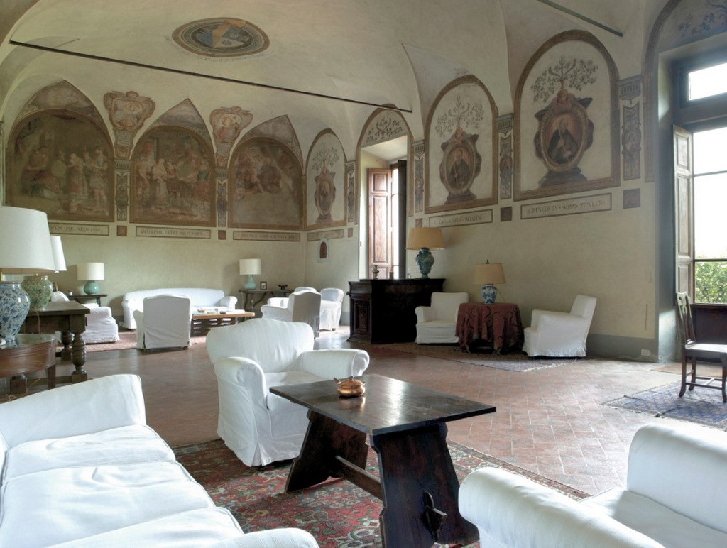L’antico refettorio è ora un elegante salone, con divani, cassettoni pregiati e un pianoforte a coda. Là dove i monaci mangiavano in silenzio, ascoltando la lettura della Sacra Scrittura o di un Padre della Chiesa, ora probabilmente si tengono feste e serate culturali. Alle pareti, affreschi con ritratti di padri del Monachesimo, San Benedetto in primis. I monaci, prima di lasciare quei luoghi, avevano coperto con una mano di intonaco quelle pareti, per nascondere i preziosi affreschi, nel timore che i soldati li profanassero. Probabilmente erano giunti alle loro orecchie i resoconti di saccheggi perpetrati dai francesi. Gli attuali proprietari, facendo dei restauri, hanno scoperto l’esistenza di questi affreschi e li hanno riportati alla luce: un tocco di spiritualità che riemerge da secoli lontani, a ricordare chi ha costruito e abitato per 800 anni quelle stanze.