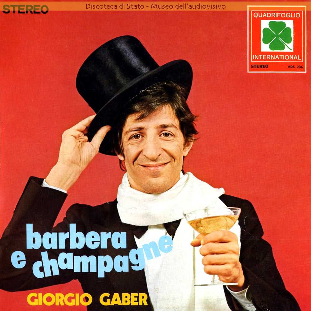 Al bancone del bar a volte si trovano gomito a gomito persone di diversa classe sociale: nel brano “Barbera e Champagne” due uomini sono accomunati dal dolore per la perdita dell’amore e annegano la loro tristezza nel bicchiere. La diversa estrazione sociale si vede da quello che bevono e da come si vestono: quello che beve champagne è in abito da sera. Ma cosa importa, la comune delusione sentimentale mette in secondo piano le differenze e decidono di trascorrere insieme la serata: uniamo i tavoli e dimentichiamo “coi nostri vini il nostro triste amor”. La conversazione ad un certo punto tocca argomenti spinosi: se si parla di politica allora di nuovo c’è il rischio di sentire il divario tra i due: “Longo, Fanfani, Moro, e giù barbera; Gianni Rivera, Mao, e giù champagne. Guardi, stia attento, lei mi sta offendendo! Uhelà, come ti scaldi, ma va’ là”. Ma presto si supera tutto e si ricomincia a bere e solidarizzare fino a quando, all’alba, il barista li butta fuori perché deve chiudere.