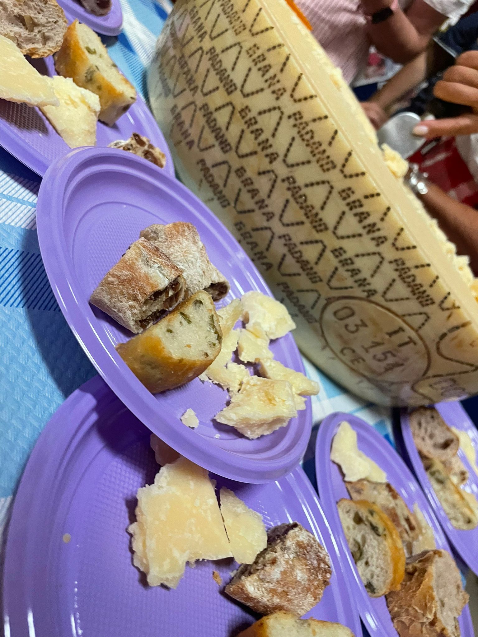 La sala si riempie, quanto pubblico! E’ sempre una gioia poter parlare della cultura dei monasteri e vedere quanto entusiasmo suscita questo tema: come sapete se siete miei lettori in questo blog, ho dedicato tanto spazio al ruolo del monachesimo e al suo contributo alla costruzione della civiltà occidentale (per esempio leggete qui). Dopo una prima parte dedicata ad un inquadramento generale del tema, nella seconda parte del mio intervento mi soffermo sulla cultura gastronomica delle abbazie, sui loro prodotti genuini, di ottima qualità, perché realizzati nel rispetto della natura, della stagionalità e territorialità, valorizzando il lavoro manuale, nel rispetto del creato. Arriviamo quindi alla degustazione: l’assaggio di formaggio Grana Padano è preceduto da una breve storia sulla sua origine monastica.