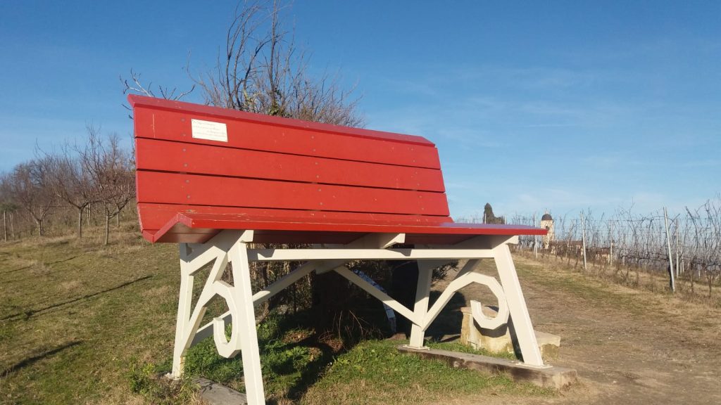 Meditando davanti ad una vigna, in un pomeriggio d’inverno, su una panchina gigante