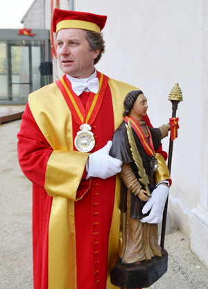 Come dicevo, uno degli scopi della Confraternita è quello di tenere vivo il folklore della Borgogna. Un esempio è quello della festa di Saint-Vincent di cui vi parlavo all’inizio di questo post. Viene celebrata ogni anno, a rotazione in una località diversa della Borgogna. Si svolge nell’ultimo fine settimana di gennaio e attira migliaia di visitatori. Si tiene una solenne funzione religiosa, alla presenza del Vescovo della diocesi, e poi si compie una processione tra le vigne portando la statua di Saint-Vincent, patrono dei vignaioli. La cerimonia si svolge nella stagione invernale, in attesa della primavera, per benedire le vigne e auspicare una stagione propizia. Una grande festa popolare, carica di profondo significato spirituale.
