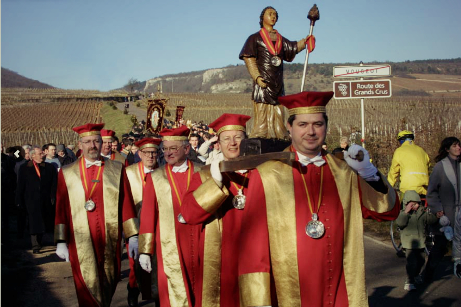 Ora è un po’ più raro assistere a questi riti, ma in alcune regioni c’è ancora questa bella tradizione: facendo una veloce “navigata” su un motore di ricerca, ne ho trovati diversi esempi. (Nella foto: processione con la statua di Saint-Vincent, protettore dei vignaioli, in Borgogna).