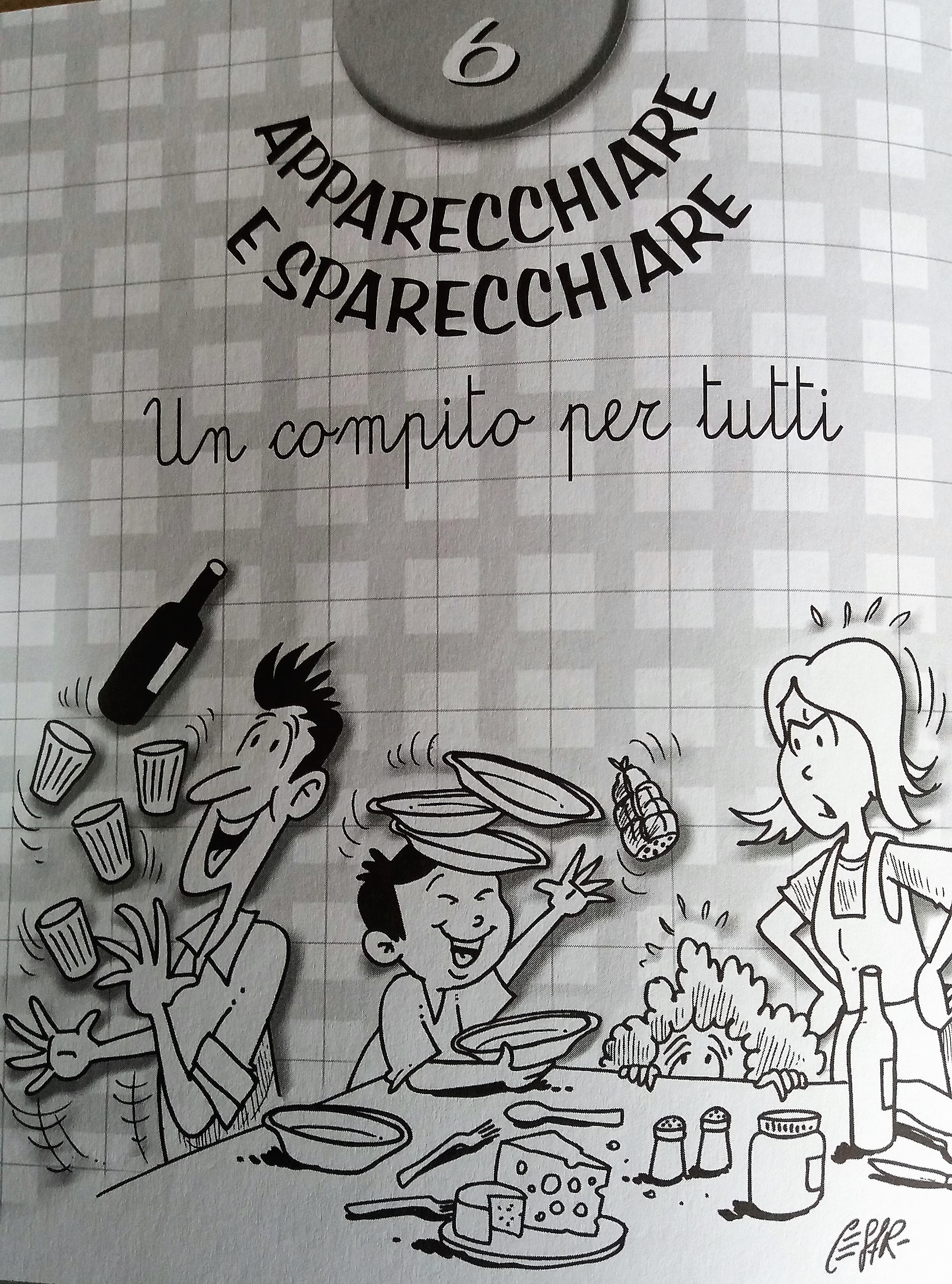 A pag. 89 del libro c’è un questionario “per una riflessione sul vissuto della tavola”. Lo leggo e penso a quando, in occasione di incontri e conferenze, chiedo al pubblico quanti dei presenti sono abituati a cenare in famiglia con una certa frequenza e con la TV spenta, e tra l’imbarazzo generale si alzano solo poche mani …