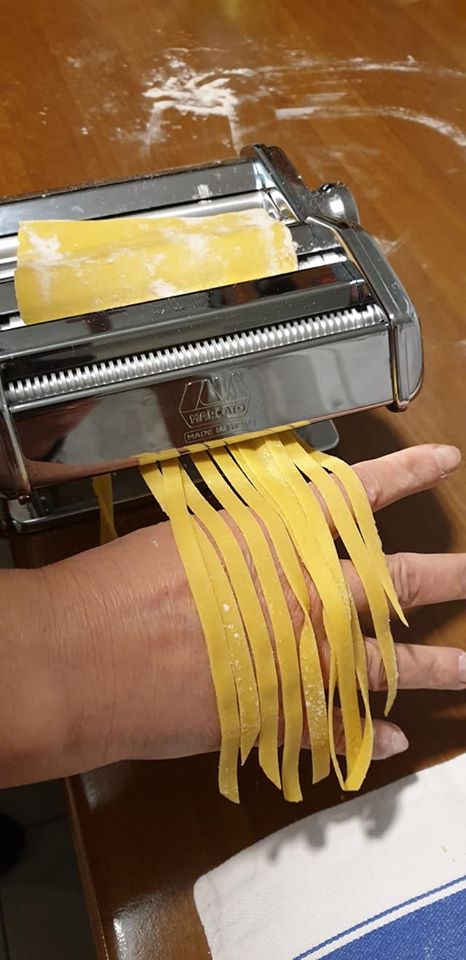 Sotto l’albero di Natale ho trovato una macchina per fare la pasta fresca. Il regalo è arrivato da mio marito Andrea, che ha voluto lanciarmi così un messaggio nemmeno tanto subliminale. Devo dire, a onor del vero, che anche lui ha voluto darmi una mano e il suo aiuto è stato fondamentale. Non solo siamo riusciti a fare le tagliatelle, sono venute anche molto bene e ci stiamo cimentando in gustose varianti. Ci siamo divertiti e ho avuto la prova di quanto mettere le mani in pasta sia un efficace antistress: sto attraversando un momento della mia vita abbastanza impegnativo, su tanti fronti, e dedicarmi a questa attività manuale è non solo fonte di soddisfazione ma anche un potente antidoto contro le tensioni e le preoccupazioni.