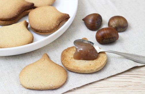 Prendo un biscotto, lo copro con un velo di marmellata di castagne e lo chiudo con un altro biscotto. In due è meglio, la coppia con in mezzo quella crema profumatissima è davvero uno spettacolo. E’ un piccolo matrimonio: ogni individuo ha un suo valore ma uniti da un vincolo dolcissimo il risultato è ben più spettacolare.