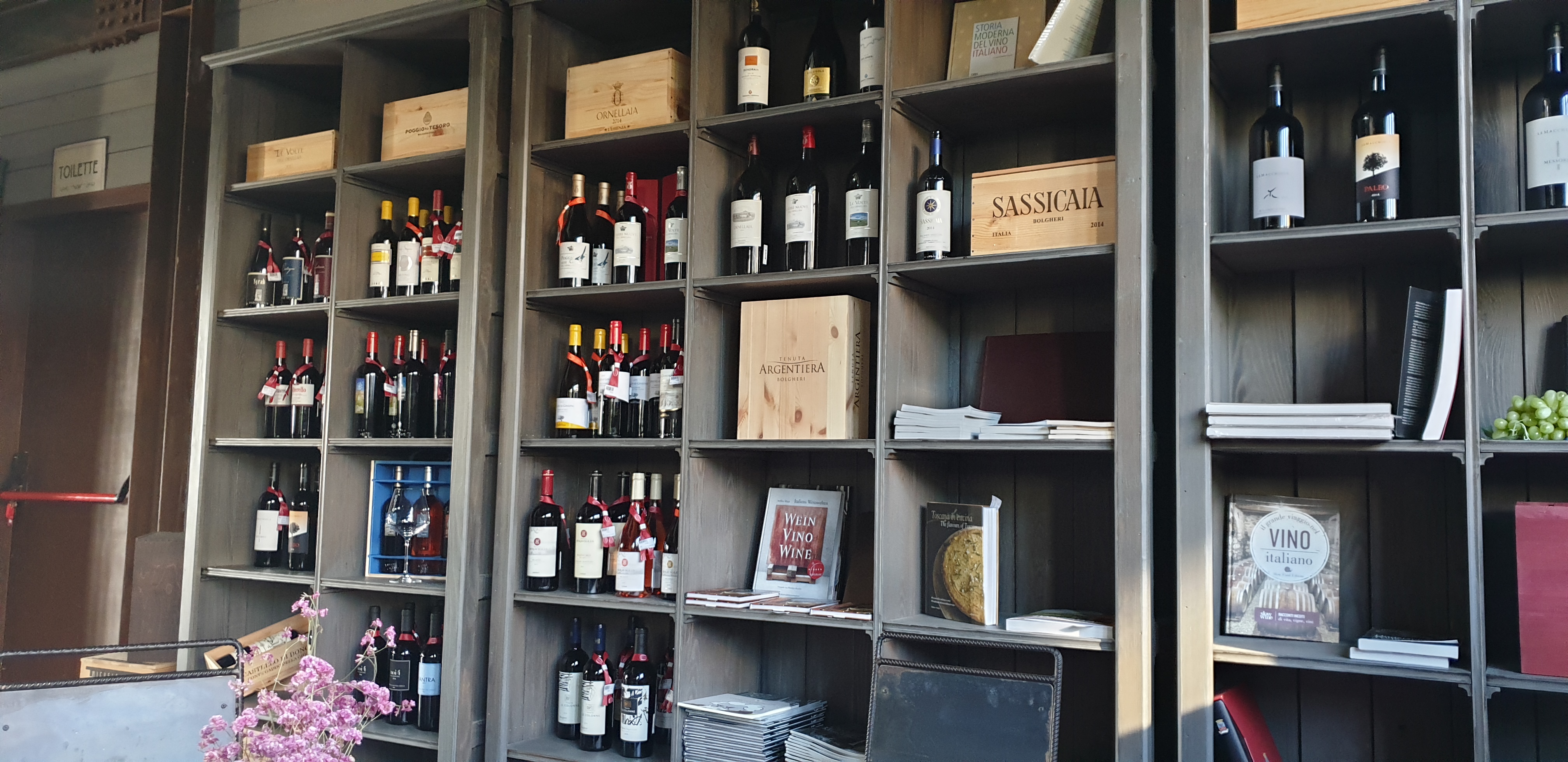 E’ una piacevole conclusione dell’itinerario: la sala è ampia, con una grande libreria costellata di bottiglie e pubblicazioni sul vino. Seduti su comodi divani, sorseggiamo un Supertuscan, pensando che il vino ha una storia che non finisce mai, sempre aperta e nuove sperimentazioni e nuove emozioni.