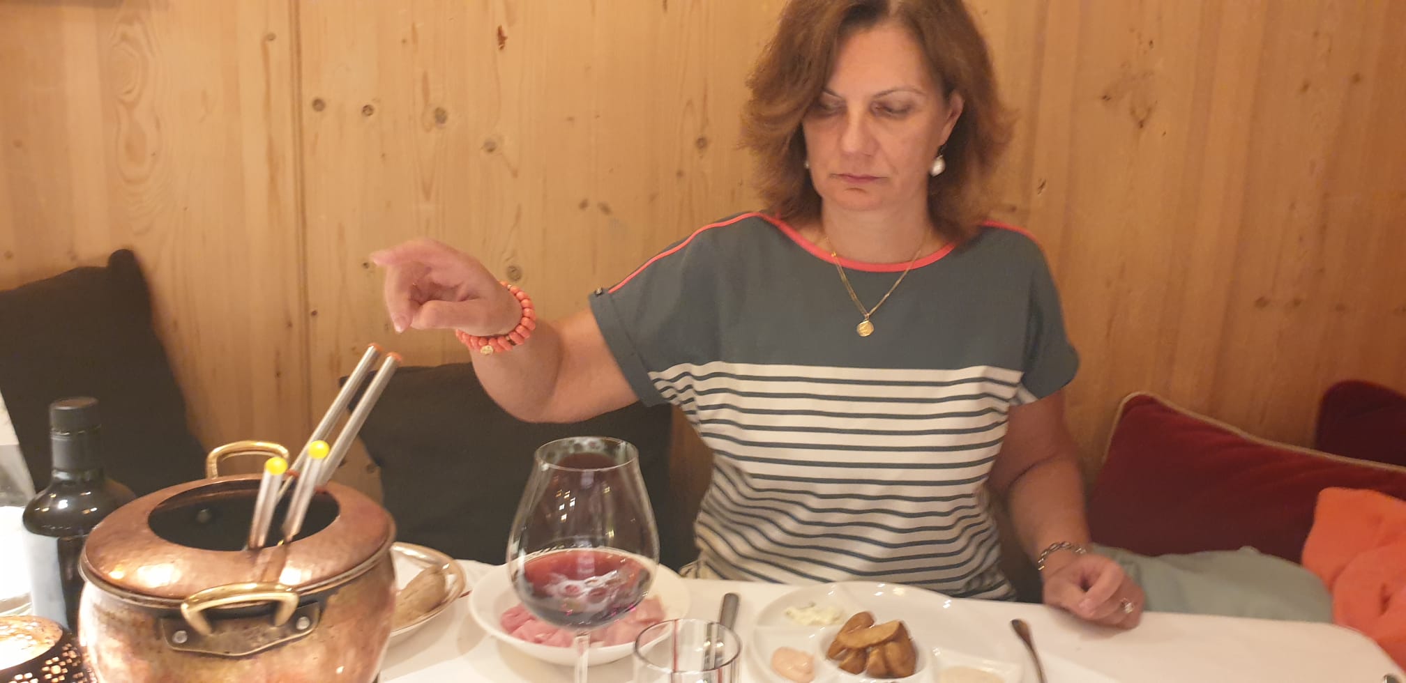 Mia suocera la preparava per Andrea, in occasione del suo compleanno; ancora oggi ogni tanto tiriamo fuori il fornelletto e ci divertiamo. In casa facciamo la versione chinoise, quella nel brodo, più leggera ma sempre gustosa. In Borgogna ho gustato la vera bourguignonne, quella con la carne cotta nell’olio, così come in occasione della nostra recente vacanza in Val Badia abbiamo approfittato della preparazione nella Stube del Fondue Restaurant dell’Hotel Rosa Alpina di San Cassiano.