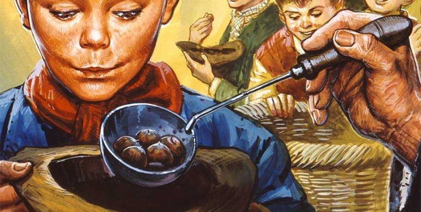 I primi incontri che don Bosco organizzava all’oratorio erano costituiti da un momento di catechesi e preghiera, e alla fine si faceva sempre merenda insieme. Don Bosco ci teneva a concludere i pomeriggi con un momento conviviale, apprezzato da quei ragazzini che erano poveri e avevano sempre la pancia vuota. Era un’occasione di allegra condivisione, un gesto di amore e di dono, un modo per costruire una comunità spensierata. C’erano sempre ben pochi soldi nella cassa dell’oratorio, per fortuna alcuni benefattori contribuivano volentieri a mettere sul tavolo quella merenda, ma anche quando mancava il necessario don Bosco trovava sempre una soluzione, a volte davvero miracolosa: ad esempio quando in occasione della festa di Ognissanti portò i ragazzini al Camposanto, promettendo loro che al ritorno avrebbero gustato le caldarroste.