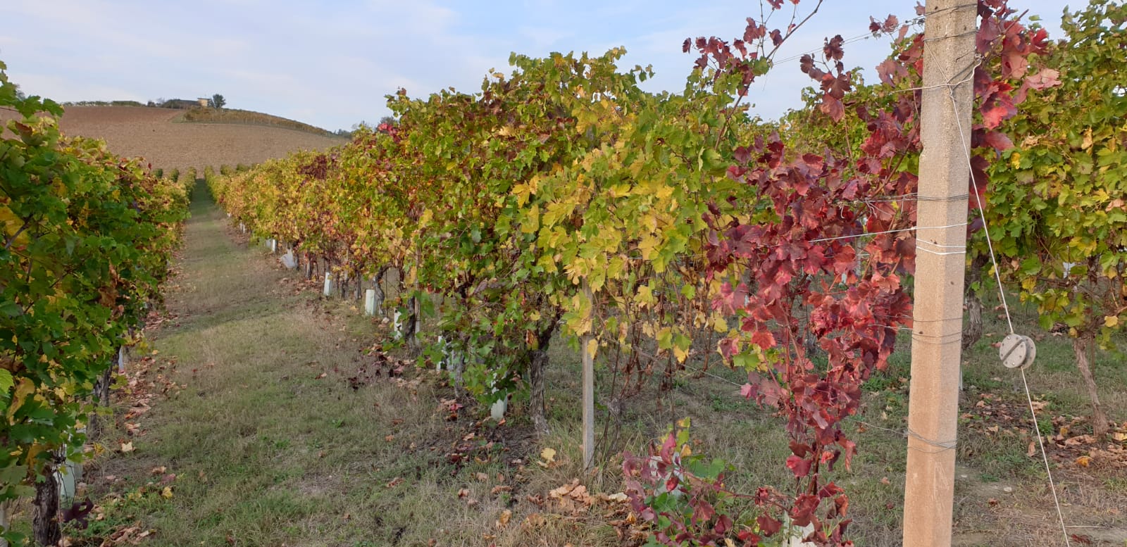 In una splendida domenica di sole di fine ottobre, Andrea ed io percorriamo in auto una strada sterrata che entra nella proprietà di una nota casa vitivinicola piemontese. Non c’è muro di cinta, non c’è cancellata, alcuni cartelli ci indicano che siamo in una proprietà privata, ma percorriamo quel viale liberamente, sentendoci accolti. Non c’è anima viva intorno a noi, solo filari a perdita d’occhio, in lontananza borghi e castelli e una chiesetta di campagna. Il panorama è mozzafiato e i colori dell’autunno sono spettacolari. Lungo la via, si apre uno slargo e ne approfittiamo per fermarci, godere di quella bellezza e fare qualche foto.