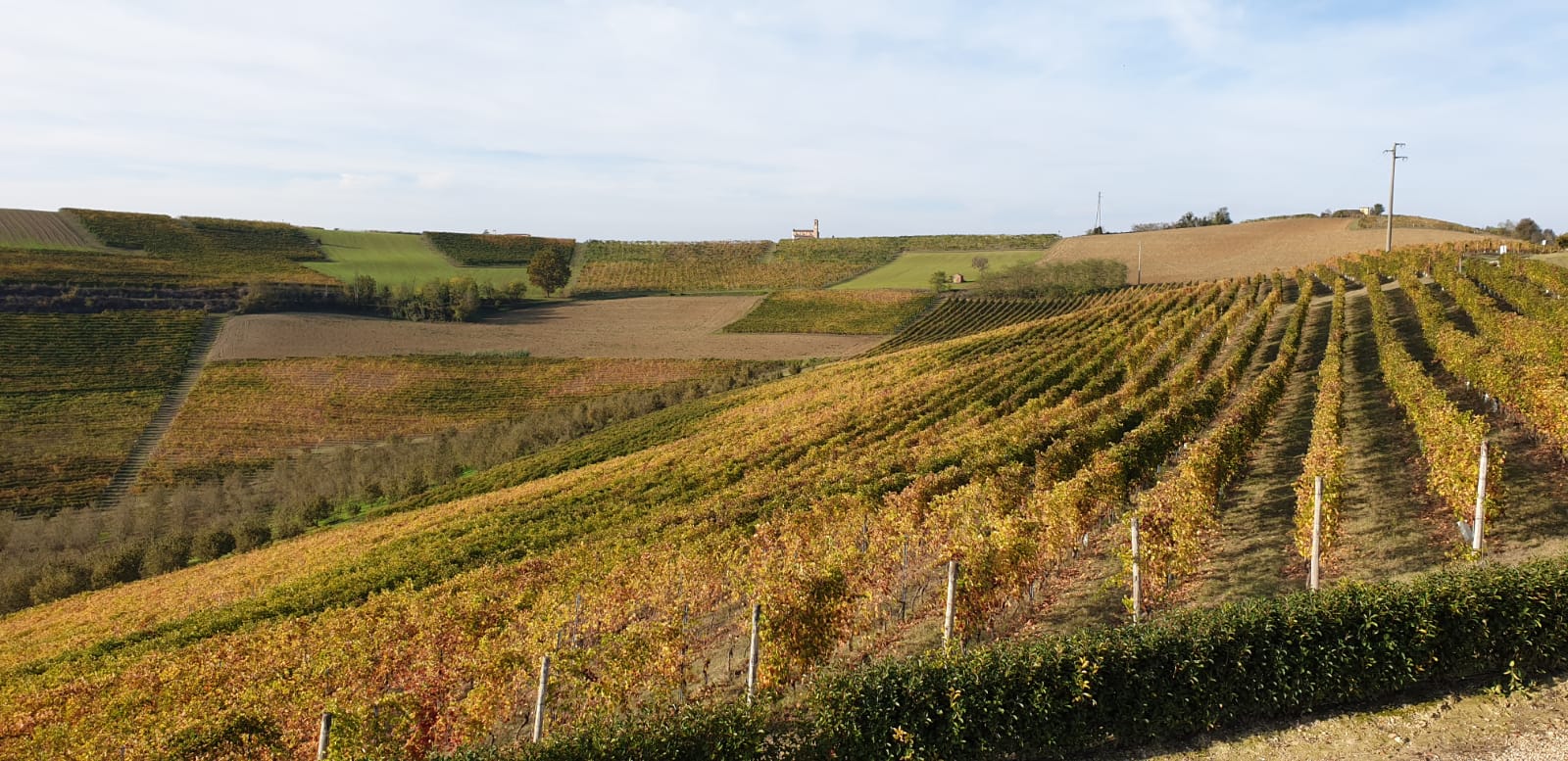 In una splendida domenica di sole di fine ottobre, Andrea ed io percorriamo in auto una strada sterrata che entra nella proprietà di una nota casa vitivinicola piemontese. Non c’è muro di cinta, non c’è cancellata, alcuni cartelli ci indicano che siamo in una proprietà privata, ma percorriamo quel viale liberamente, sentendoci accolti. Non c’è anima viva intorno a noi, solo filari a perdita d’occhio, in lontananza borghi e castelli e una chiesetta di campagna. Il panorama è mozzafiato e i colori dell’autunno sono spettacolari. Lungo la via, si apre uno slargo e ne approfittiamo per fermarci, godere di quella bellezza e fare qualche foto.