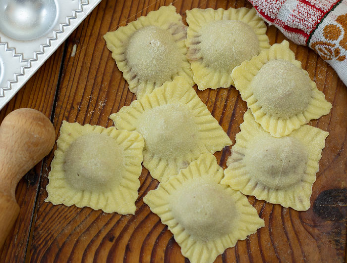 Ma dopo il genio che ha inventato gnocchi e maccheroni, chi sarà il primo che ha fatto i ravioli? Pensiamo al cuoco o alla cuoca che ha sul tavolo della sua cucina le strisce di pasta, il ragù di carne o un pasticcio di verdure e invece di mescolare quegli ingredienti tra loro decide di fare un dischetto di pasta, riempirlo con il ripieno, sigillarlo e lessarlo nell’acqua. Una trovata molto gourmet, che ha un grande successo e dà il via ad una ricca tradizione regionale. Ma attenzione al nome, per non scatenare crisi diplomatiche. L’enorme varietà di formati e ripieni ha dato infatti origine a mille varianti: tortellini, cappelletti, ravioli, agnolotti, anolini, ecc. Diversi nella forma e nel ripieno e guai a chiamarli col nome sbagliato.