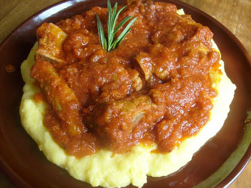 Anche a sud del Po si apprezza la polenta, che viene preparata con ricette originali: ad esempio mio marito mi racconta che quando da bambino trascorreva le vacanze in Toscana, per la precisione in provincia di Lucca, la nonna preparava i matuffi. Si tratta di un ricco e appetitoso piatto unico a base di polenta morbida e una salsa di pomodoro saporita, con aglio e basilico. Si versa un po’ di polenta nella zuppiera, poi qualche cucchiaiata di salsa, una bella spruzzata di formaggio grattugiato, e a seguire altra polenta, salsa e formaggio, tutto a strati. E’ un piatto molto gustoso.