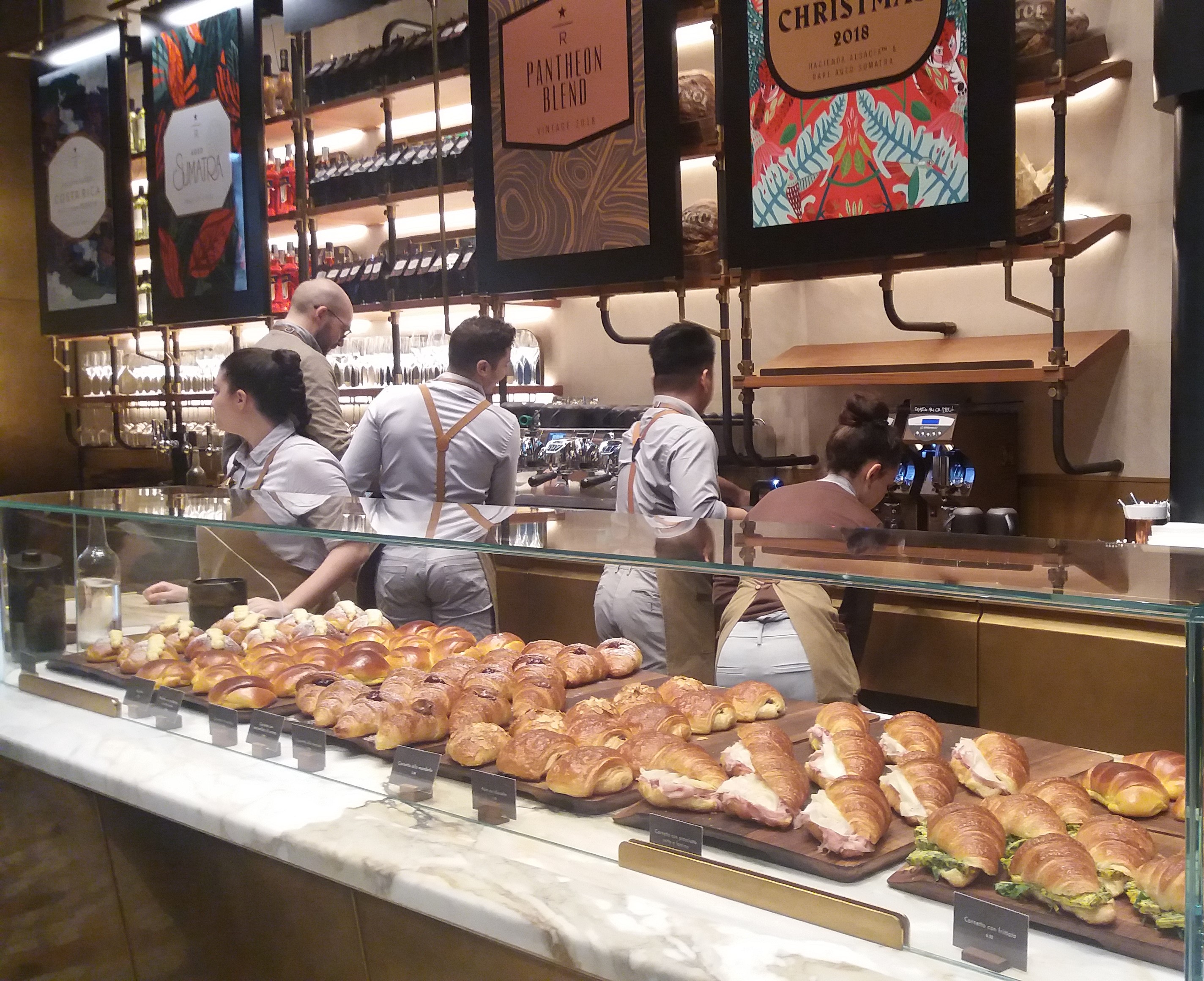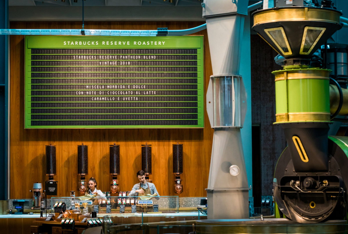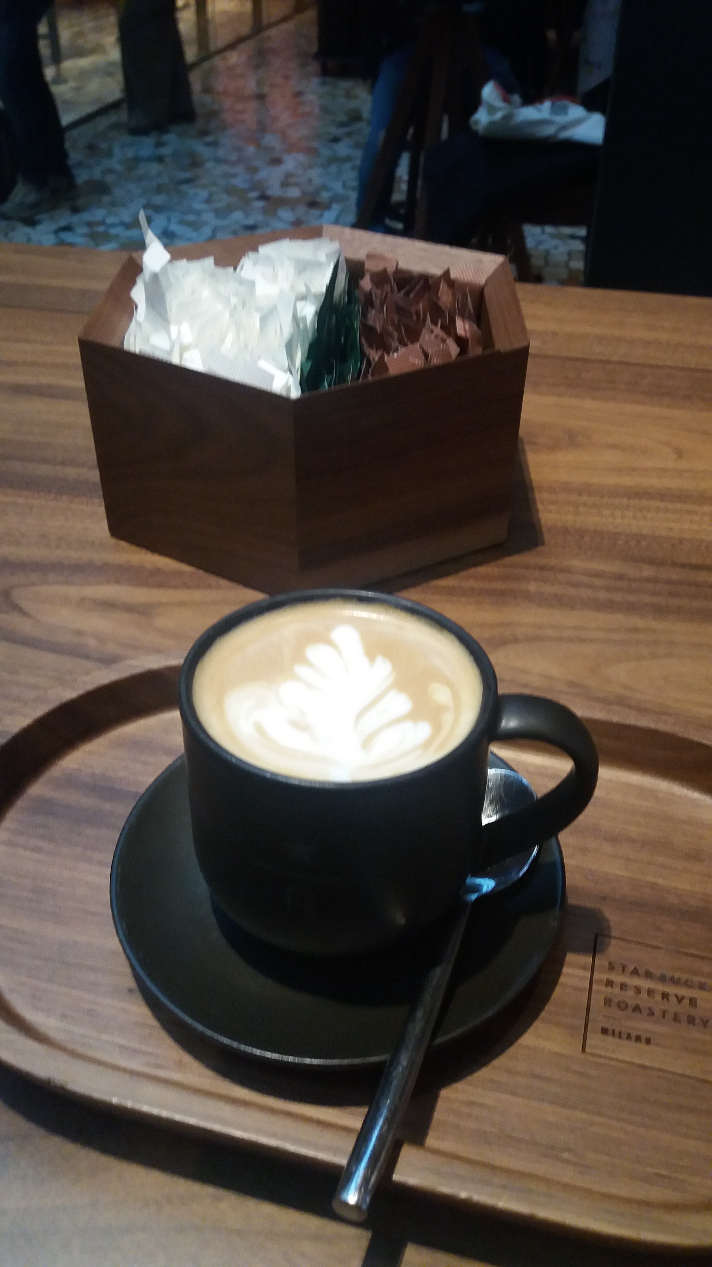 Una premessa: il mio ideale di caffetteria è il Caffè degli Specchi a Trieste. Entrando da Starbucks sono rimasta quindi un po’ stordita dalle dimensioni e dal bombardamento di esperienze visive, tecnologiche, culinarie, architettoniche e di design. Bisogna entrare con curiosità, senza pregiudizi, e soprattutto prendendosi il tempo per fare un giro con calma tra i vari settori del negozio. E alla fine potrete anche prendere il caffè, ma il bello della visita è che potreste anche non prenderlo. Se il vostro obiettivo è quello di consumare velocemente un espresso italiano al bancone, non andate da Starbucks. Ma se volete immergervi in una esperienza sensoriale sul caffè, la sua produzione e commercializzazione, allora vi consiglio di entrare.