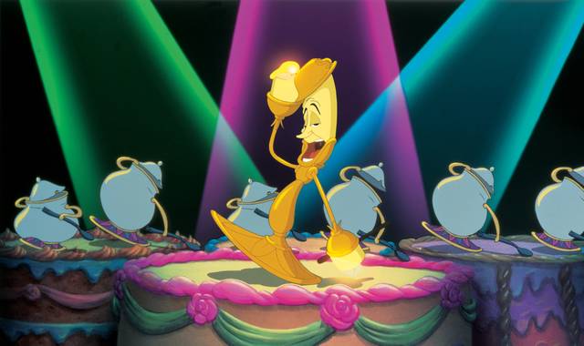 La scena è molto divertente, è un piacere per gli occhi assistere a questo vero e proprio show: la tavola è un palcoscenico dove si susseguono portate succulente, piatti preziosi, bicchieri scintillanti, candele, fiori e bottiglie di spumante che fanno il botto. Sotto la guida di Lumière, il maitre trasformato dalla maledizione in un candeliere, Belle viene trattata come un ospite di riguardo, tutti i servitori ci mettono il massimo impegno, pieni di gioia e di giusto orgoglio per quello che possono fare. Per troppo tempo sono stati riposti in un armadio, coperti di polvere, senza poter dare prova delle loro capacità. Improvvisamente tutto prende vita e il risultato è un piacere per gli occhi, prima ancora che per il palato. Come dice il testo della canzone: “Che raffinatezza, grazia e perfezione!”