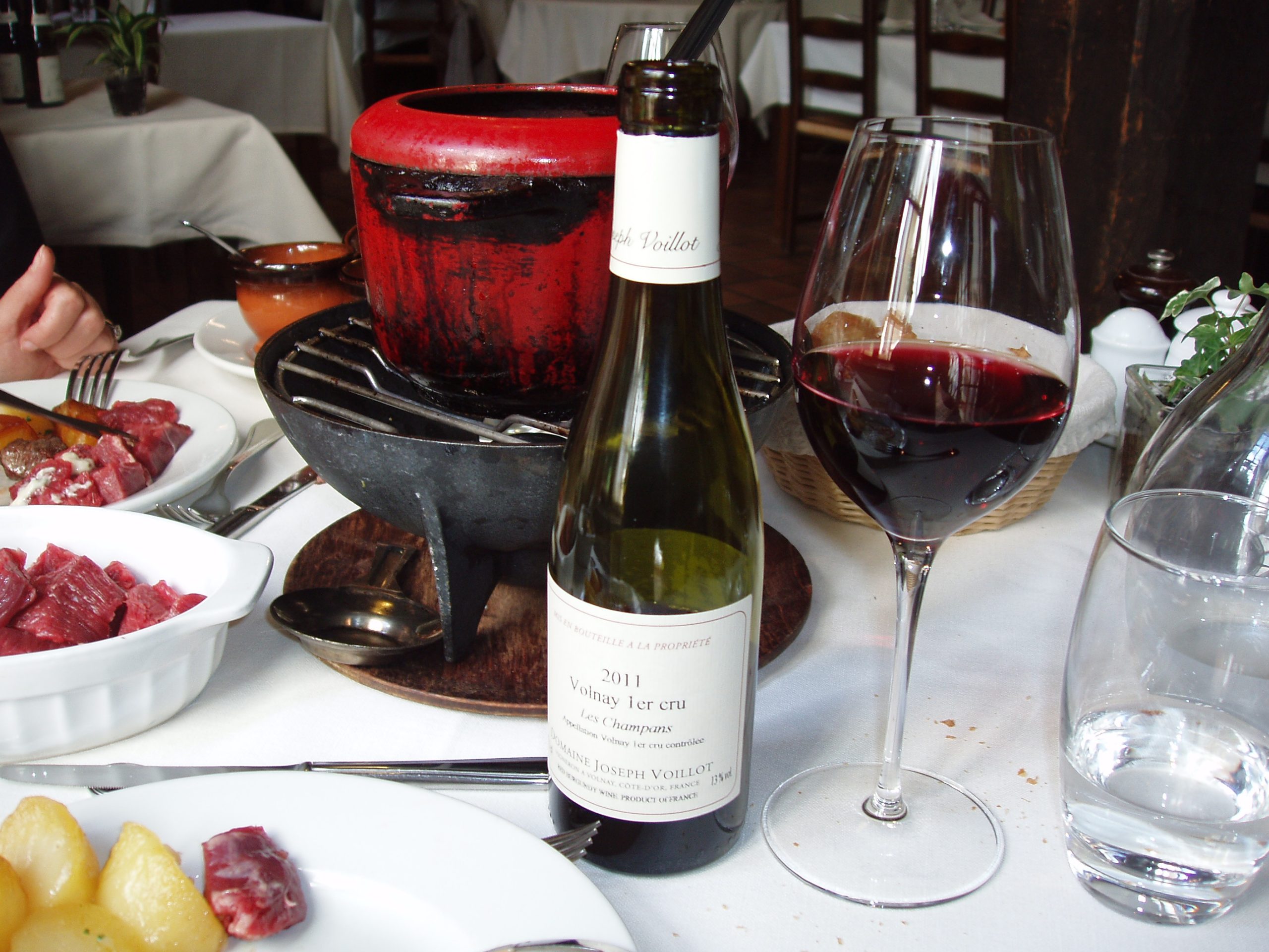 C’è un’immagine che è stampata nella mia mente, un ricordo tenero e commovente. E’ l’autunno del 2013, la Borgogna ci regala i suoi splendidi colori dell’autunno, che tingono di rosso le vigne di Pinot Nero. Andrea ed io, dopo avere visitato la splendida Beaune, percorriamo la Strada del Vino e andiamo a pranzare a Volnay. Le Cellier Volnaysien è un ottimo ristorante, situato in una villa antica, con la facciata coperta di edera. La sala è elegante e calda, con un arredamento che evoca in tanti dettagli l’atmosfera della migliore tradizione della Borgogna. Il cameriere è cordiale e molto attento nel servizio. Certo, se fossimo nella favola di Pinocchio il suo naso sarebbe diventato lungo lungo, quando mi dice con molto charme che il mio francese è perfetto. Non è così, ma ho apprezzato il suo impegno nel mettere a proprio agio i clienti. Cosa abbiamo mangiato? La Fondue Bourguignonne, ça va sans dire!