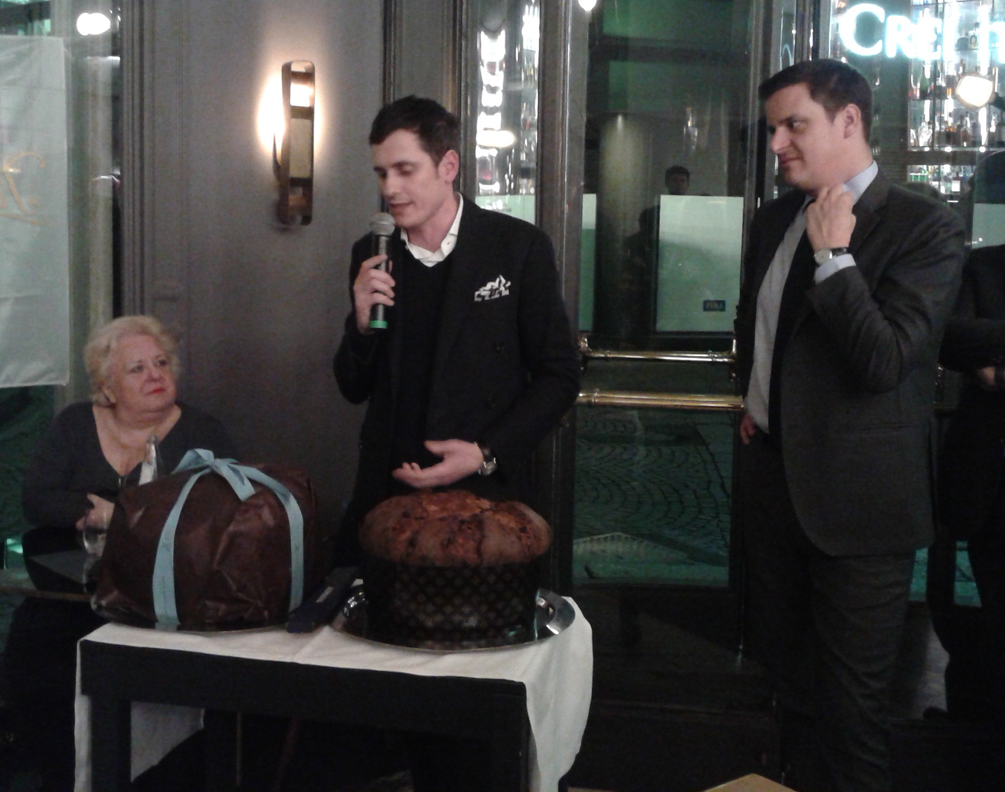 Tancredi Alemagna si presenta con un carrello sul quale troneggia un panettone da tre chili: ci spiega l’arte della sua delicata realizzazione. Come fosse una preziosa reliquia, estrae il coltello di famiglia, gelosamente tramandato di padre in figlio, per tagliare il dolce. Ci insegna come tagliarlo e come scoprirne la qualità.